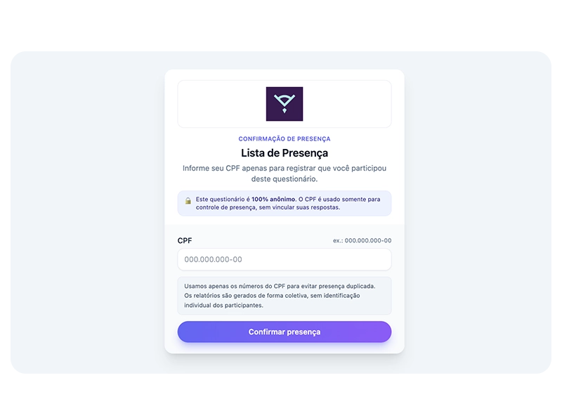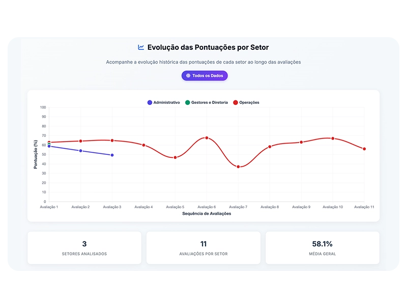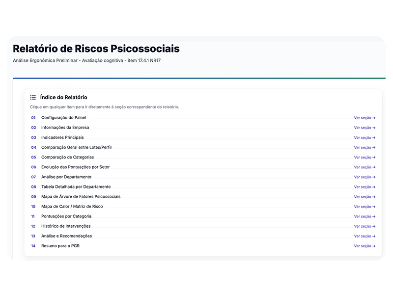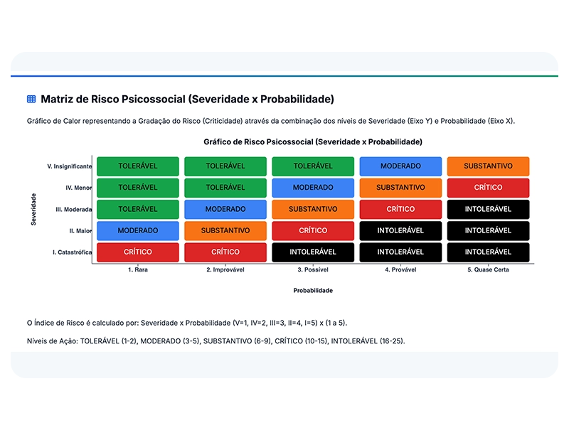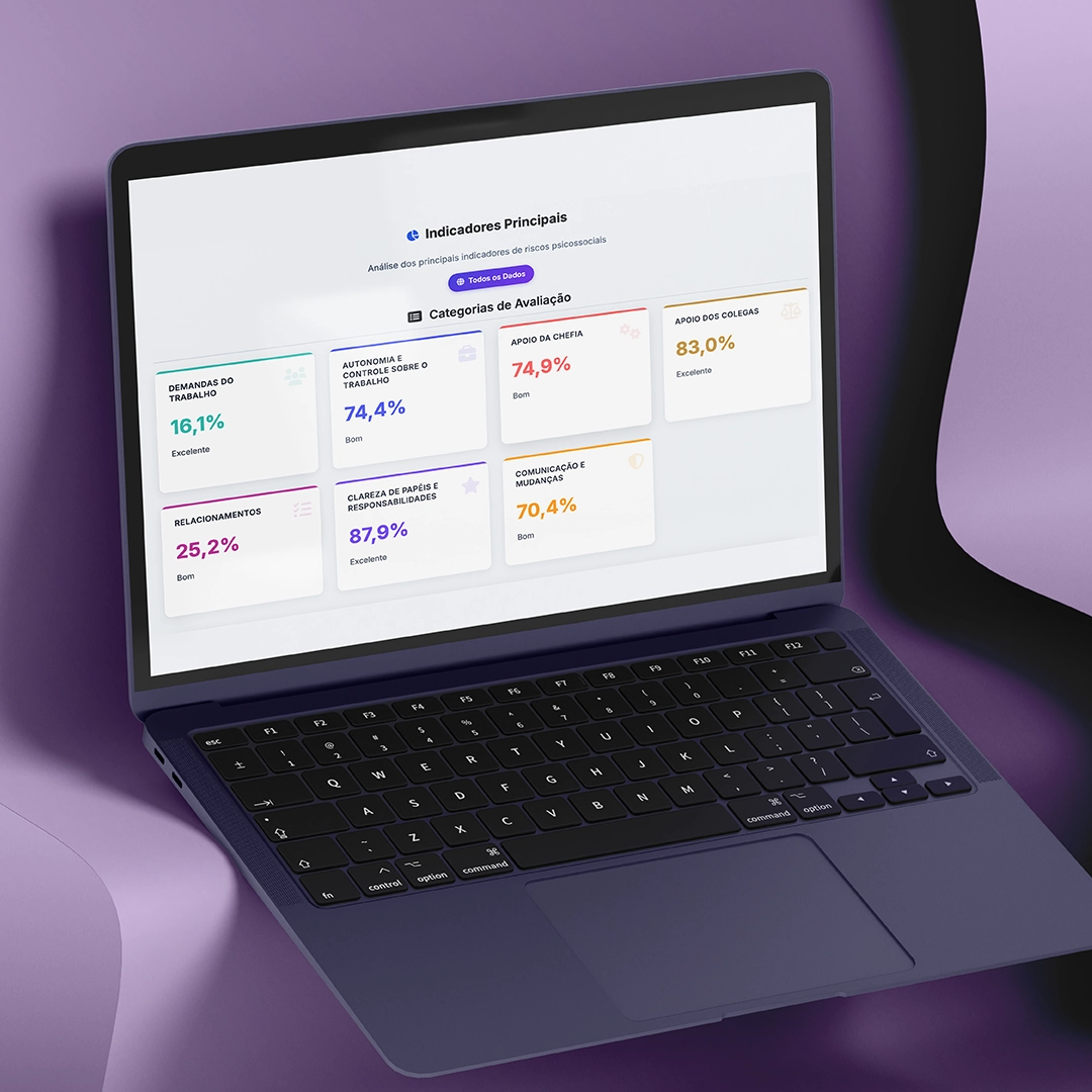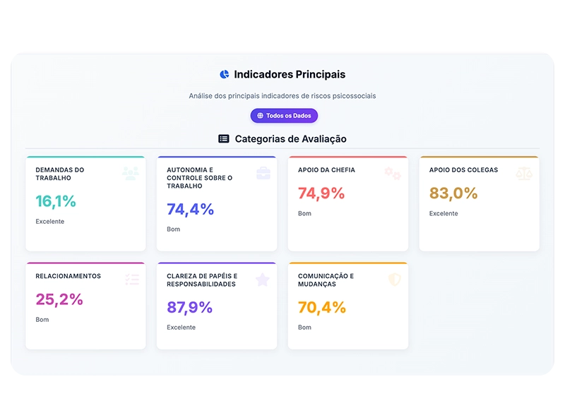 Avaliação estruturada em 100% dos colaboradores para identificar riscos, setores críticos e grupos vulneráveis.